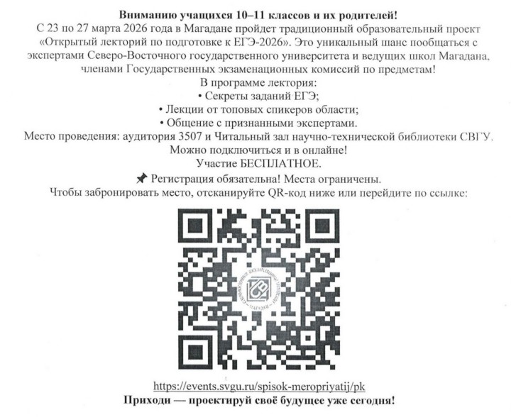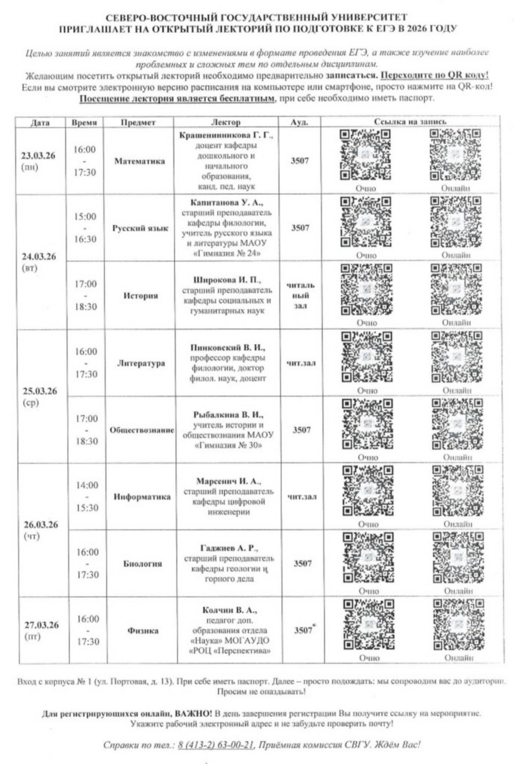 Северо-Восточный государственный университет приглашает на открытый лекторий по подготовке к ЕГЭ расписание